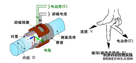 凱銘電磁流量計(jì)是以內(nèi)襯絕緣材料做為非導(dǎo)磁合金短管;兩只電*沿管徑方向穿通壁固定在測(cè)量管上,其電*頭與襯里內(nèi)表面基本齊平。勵(lì)磁線圈由雙向方波脈沖勱磁時(shí),將在與測(cè)量管軸線垂直的方向上產(chǎn)生一磁通量密度為B的工作磁場(chǎng);此時(shí),如果具有一定電導(dǎo)率的液體流經(jīng)測(cè)量管,將切割磁力線感應(yīng)出電動(dòng)勢(shì)E,電動(dòng)勢(shì)E正比于磁通量密度B,測(cè)量管內(nèi)徑d與平均流速V 的乘積。電動(dòng)勢(shì)E(流量信號(hào))由電*檢出并通過(guò)電纜送至轉(zhuǎn)換器。轉(zhuǎn)換器將流量信號(hào)放大處理后,可顯示流體流量,并能輸出脈沖,摸擬電流等信號(hào),用于流量的控制和調(diào)節(jié)。