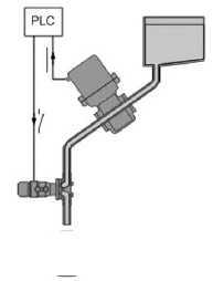 在灌裝系統(tǒng)中用到快速切斷閥(定量閥)來(lái)控制灌裝的啟停??焖偾袛嚅y的控制原理:當(dāng)電磁閥接收到PLC的輸出信號(hào)(由PLC采集灌裝流量計(jì)的脈沖信號(hào)后處理的輸出信號(hào))時(shí)開(kāi)始動(dòng)作,通過(guò)執(zhí)行機(jī)構(gòu)帶動(dòng)閥桿和閥芯向上運(yùn)動(dòng),閥芯和閥座分開(kāi),流體通過(guò)閥座進(jìn)入灌裝管道,開(kāi)始灌裝,當(dāng)電磁閥接收到PLC輸出信號(hào)關(guān)閉閥門(mén)時(shí),閥桿向下運(yùn)動(dòng),帶動(dòng)閥芯向下運(yùn)動(dòng),使閥芯和閥座接觸,從而切斷流體達(dá)到結(jié)束灌裝。本應(yīng)用中控制閥的閥桿在管道中,流體從上向下流經(jīng)整個(gè)閥體,閥桿的動(dòng)作行程分兩級(jí),對(duì)應(yīng)于小流量和較大流量。