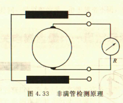 非滿管檢測也是基于電導率檢側(cè)的方法。在圖4.33所示的電磁流量傳感器中,增加了一個(或一對)非滿管檢測電*。當導管內(nèi)液體滿管時,頂部電*與其他電*之間的電阻值很小;而當存在非滿管情況時,頂部電*與導電液體之間有氣體阻隔,所以電*電阻顯著增大,從而做出非滿管判斷。