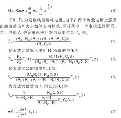 提出在硬件電路上加入模擬開關(guān), 干擾尖峰到來時(shí)斷開模擬開關(guān)避免干擾進(jìn)入后級(jí)電路,尖峰過去重新打開模擬開關(guān);K.Saito 等提出漂移校正法,先以高勵(lì)磁頻率進(jìn)行勵(lì)磁,在勵(lì)磁過程中插入低勵(lì)磁頻率提取用于漂移校正的非固定微分噪聲分量,但在插入的低勵(lì)磁頻率段漿液噪聲較大且很難將漿液噪聲與流量信號(hào)分離,此時(shí)的校正因子非單純的非固定噪聲分量,改進(jìn)措施是長(zhǎng)時(shí)間取平均值得到穩(wěn)定因子。 傳統(tǒng)方法是同步采樣保持法,即在磁場(chǎng)穩(wěn)定階段采樣。 其他消除干擾的方法有設(shè)置干擾補(bǔ)償機(jī)構(gòu)、控制勵(lì)磁電流變化率減小干擾幅值、矩形波代替梯形波、希爾伯特黃變換結(jié)合傅里葉變換和程控增益技術(shù)等。經(jīng)上述對(duì)現(xiàn)有的文獻(xiàn)分析與總結(jié)可知, 當(dāng)前消除微分噪聲主要從信號(hào)處理方面入手,并未對(duì)影響噪聲的因素加以研究。 本文建立電*測(cè)量回路等效模型,給出仿真模型搭建、參數(shù)取值和仿真結(jié)果分析。
