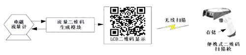 二維碼生成模塊定時向供熱補水流量計發(fā)送采集指令,后者收到指令后發(fā)送流量數(shù)據(jù)。