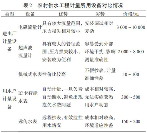 2 農(nóng)村供水工程計量設(shè)備使用及經(jīng)濟(jì)性分析