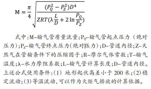 天津 LNG 設置兩座電磁流量計,單臺設計處理量 60t/h, 兩臺火炬并列運行,一用一備。自 LNG 儲罐及 BOG 系統(tǒng)來的超壓 BOG 經(jīng) PV 閥后進入火炬氣排放總管,經(jīng)分液罐沉淀 BOG 中夾雜的液滴后進入火炬燃燒放空。 雙氧水流量計設置四級排放,具體設置如表 1。 2 火炬氣排放量計算方法根據(jù)水平輸氣管流量計算基本公式:
