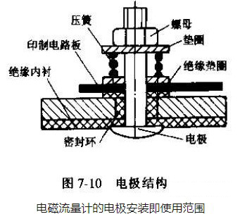 傳感器的電*安裝在與磁場垂直的測(cè)量管兩側(cè)管壁上,它的作用是把被測(cè)介質(zhì)切割磁力線所產(chǎn)生的電勢(shì)信號(hào)(流量信號(hào))引出,因此電*一般需直接與被測(cè)介質(zhì)接觸,其典型結(jié)構(gòu)如圖7-10所示。