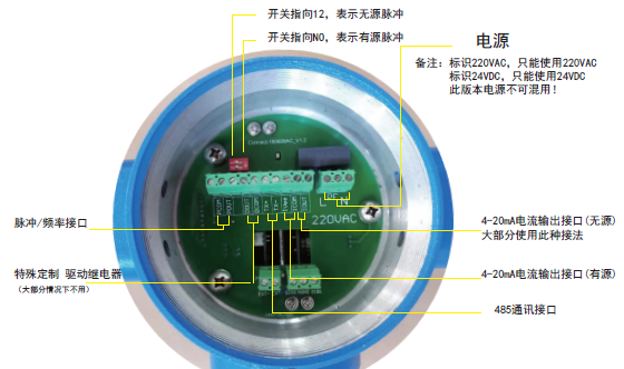 *二款:為藍(lán)色表頭,使用的也是比較廣泛的,算是*二代一體式電磁流量計(jì),接線方法如下: