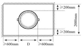 只有當安裝空間不夠時(見下圖),小于DN200mm的管道可以選用V法安裝,大于DN200mm的管道可以選用平行插入超聲波流量計。