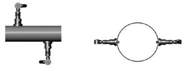 安裝管道材質(zhì)為碳鋼時可直接焊接安裝,對于不可直接焊接管材(如鑄鐵、水泥管等),需采用定制的專用管箍(帶密封膠墊),球閥底座已事先焊在管箍上,將管箍直接緊固到被測管道上。焊前必須將焊點附近的管道表面處理干凈,焊接時注意一定不要夾雜氣孔,以防漏水,甚至斷裂。