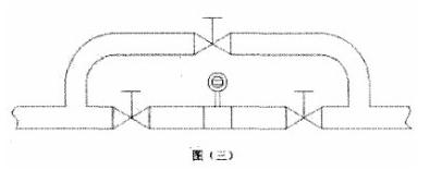 5.被測介質(zhì)是嚴重污濁液體過容易在管道結(jié)垢的液體,可以在安裝傳感器的測量管道上加一個旁通管,以便于拆卸清洗。如圖三所示。