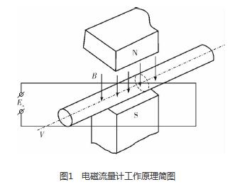 dn200污水流量計是利用法拉*電磁感應定律設(shè)計的流量測量儀表,用于測量導電液體的體積流量。根據(jù)法拉*電磁感應定律,當導體切割磁力線運動時,導體內(nèi)將產(chǎn)生感應電動勢Ex(圖1),方向根據(jù)右手定則確定,感應電動勢Ex的大小與磁場的磁感應強度B、傳感器管道的內(nèi)徑D和流過導電液體的流速V成正比,B、D、V三者相互垂直,即Ex=BDV。