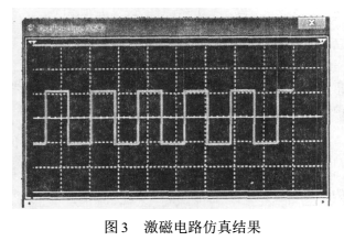 其中,Vp2是P2端口輸出電壓幅值的絕對值,此處應(yīng)該是+24V。整個電路是對稱的,且R15=R20,當(dāng)P2.9為低電平,P2.8為高電平時,P2的端口2無電壓輸出,端口1輸出+24V的電壓,Vref(+)值不變,如此周而復(fù)始輸出頻率為6.25Hz的的雙*性矩形波。用Multisim仿真結(jié)果如圖3所示。